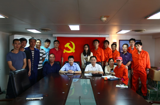 刘新中在支部会议上讲话,他代表所党委对临时党支部的成立表示祝贺,对本次科考队全体党员和临时党支部提出了四点要求。他希望,一是全体党员要充分认识本次科考的重大意义。这既是常规的普通的科考,更是宣示海洋权益的科考,要从维护国家海洋权益的高度做好本次南沙海域渔业资源与生态环境调查工作。二是要尽职尽责完成好各自的本职工作,在各自岗位上体现党员的先进性。船队党员要借此机会提高科考船科学管理能力;科考人员要更加规范调查及试验操作,确保调查数据的科学性和准确性;媒体方面,要在保障国家利益安全的前提下加大宣传力度。三是要真正发挥党员的先锋模范带头作用。这次科考航程远,可能面临的难关多,全体党员在关键时刻要挺身而出,真正履行入党宣誓的诺言。四是临时党支部要在整个科考过程中真正发挥党支部战斗堡垒的作用,同时过好组织生活,为本次科考工作顺利完成提供坚强的组织保障?/p>