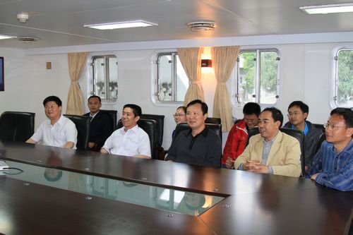 江所长等领导与船员和科技人员进行了座谈,详细了解本航次护渔、科学考察的情况。江所长希望大家总结经验,发扬成绩,再接再厉,为下个航次的科学调查考察做好准备,更好地完成海洋渔业科学调查考察任务,充分发挥“南锋”号海洋科考船的海上科学研究平台作用?/p>