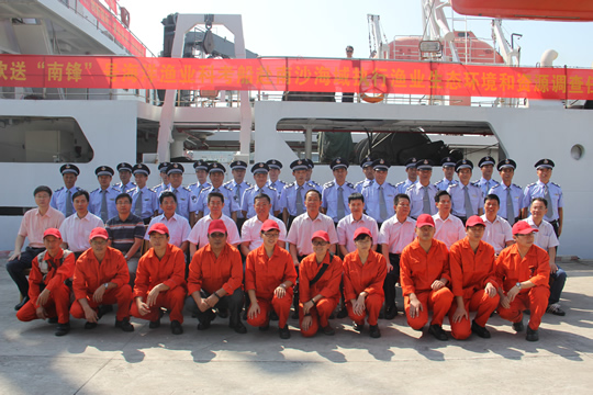 孙生智代表农业部渔业局和中国渔政指挥中心、吴壮代表农业部南海区渔政局,对南海所、对参加此次科考的全体人员表示慰问,对此次组织“南锋”号赴南沙海域开展渔业资源及生态环境调查的意义给予了充分肯定和高度评价,并提出了希望和要求?/p>