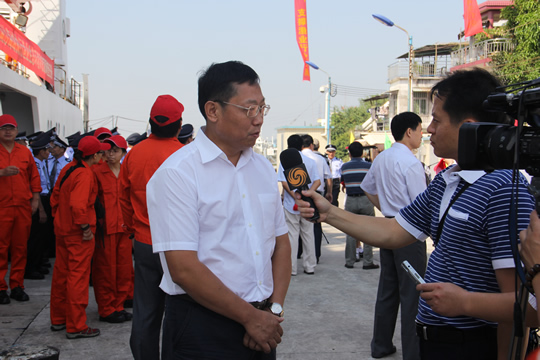 启航仪式前,张显良、孙生智、江世贵、刘新中等领导登上了“南锋”船,到驾驶台、船上各实验室等处,详细了解并检查了相关备航准备工作。张显良还接受了凤凰卫视台的现场采访?/p>