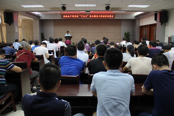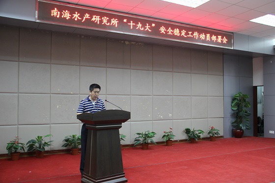 继组织参加9月21日中国水产科学研究院“十九大”安全维稳工作动员部署视频会、深入学习农业部有关会议精神之后,9月25日,南海水产研究所召开全力做好“国庆”“中秋”和“十九大”期间安全稳定工作动员部署会。所党委书记徐竹青主持会议,所长江世贵和副所长杨北胜、李来好,重点实验室主任李纯厚,所党委副书记陈水胜以及在职职工等参加会议。