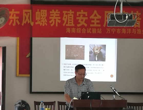近日,依托中国水产科学研究院南海水产研究所建设的国家贝类产业技术体系海南综合试验站,联合海南省万宁市海洋与渔业局在该市山根镇举办了东风螺养殖安全用药培训班。重点实验室科研人员王江勇研究员、吴开畅研究员、温为庚研究员等为培训班授课,来自当地东风螺养殖企业技术人员、养殖户等40多人参加了培训。