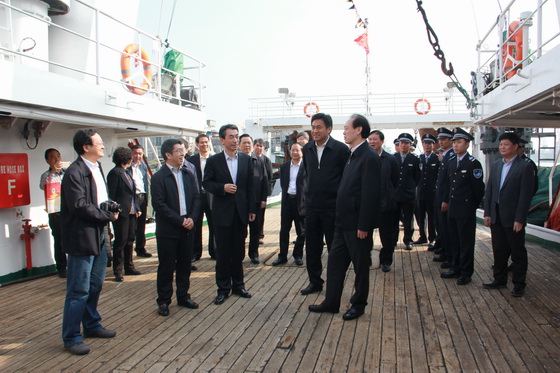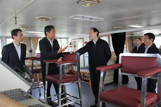 余欣荣副部长、邓海光副省长一行深入到南海所调查船基地和南海渔业中心进行考察调研,在“南锋”号科考船上,详细了解“南锋”科考船建设历程及技术参数和主要功能,询问了船舶运转、管理、执行科考任务等有关情况;在南海渔业中心,参观了南沙渔船船位监控系统,了解了南沙渔船实时监控平台、南沙渔业管理沟通协调工作机制等有关情况,并电话慰问了在南沙生产的渔民。