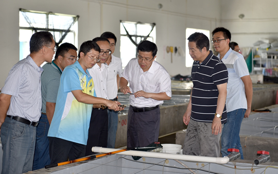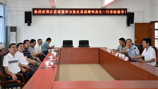 2015年7月28日,江苏省海洋与渔业局汤建鸣局长到重点实验室深圳试验基地考察调研。深圳市经济贸易和信息化委员会海洋经济处处长欧阳卫国、深圳华大水产科技有限公司总经理徐军民等参加调研。实验主任李纯厚研究员、深圳基地主任林黑着等接待了汤建鸣局长一行,并进行了座谈交流。