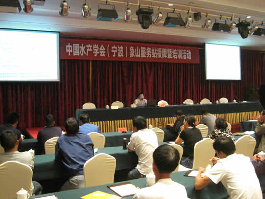 活动期间,实验室科研人员先后走访了象山、宁海当地的水产苗种繁育企业和养殖企业,深入了解当地对虾养殖技术现状,并就养殖生产中存在的相关技术细节问题与技术人员进行充分的沟通和交流,现场派发技术资料50多份,取得了良好效果。曹煜成还作了题为“对虾养殖池塘环境菌藻调控技术”的讲座,吸引当地养殖技术人员120多人参加。