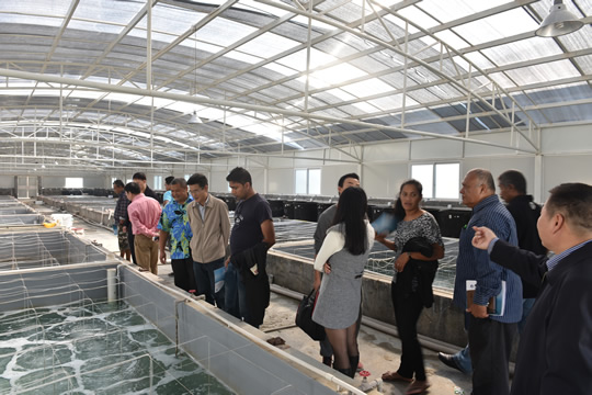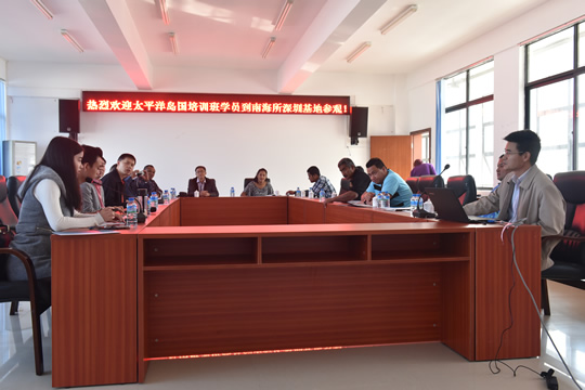 2015年11月30日,广东省海洋与渔业局组织第二期广东太平洋岛国高级公务员培训班学员,到农业部南海渔业资源开发利用重点实验室深圳试验基地参观学习。此次参训学员主要来自斐济、密克罗尼西亚、汤加、萨摩亚等国家。