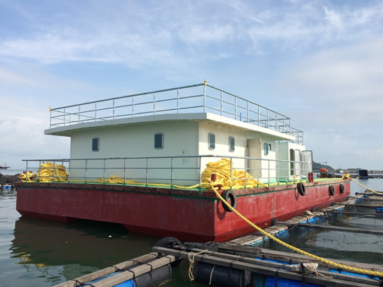 三是建造了我国第一座深水网箱多功能装备测试平台。该平台以船舶技术标准设计建造,型长20米,型宽10米,载重150 t;配备的先进的仪器设备为开展新型网箱及自动化装备性能测试、养殖生产模式开发提供了全方位的科研基础,为未来深水网箱产业发展提供了有力技术支撑。