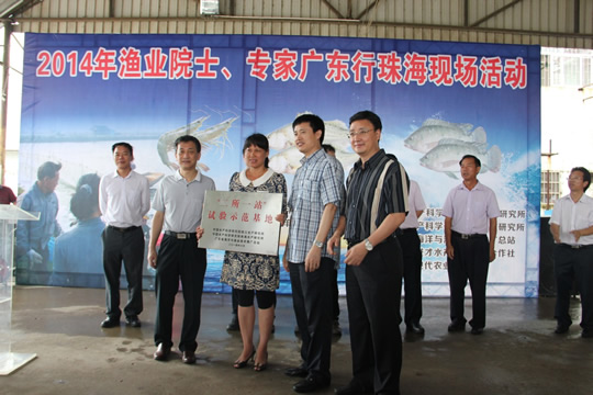 “2014渔业院士、专家广东行”系列活动内容丰富,包括院士和专家授课、现场互动答疑、赠送技术资料、政策咨询、现场技术指导等环节。在广州番禺区海鸥岛活动现场,南海所李卓佳研究员讲授了对虾健康养殖技术;在珠海白蕉镇昭信村活动现场,南海所区又君研究员讲授了“咸淡水鱼类(白蕉海鲈)健康养殖技术”。活动期间,共培训养殖户500余人,现场发放技术资料1000余份;南海所、珠江所、广东推广总站领导将“二所一站”试验示范基地的牌子分别授予番禺区水产技术推广站试验基地、进才水产专业合作社海鲈养殖基地,并在珠海进行了现场考察,详细了解海鲈养殖生产状况及产业中亟需解决的问题,积极为促进现代渔业园区建设、推进渔民群众专业技能转型升级提供有力支撑。