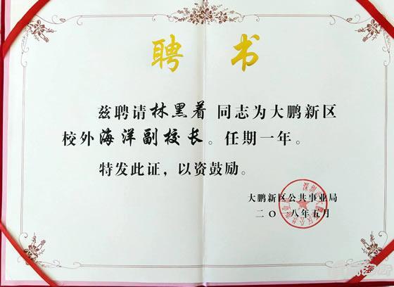 5月16日,由大鹏新区公共事业局组织发起的深圳市大鹏新区首批“校外实践基地”授牌仪式在大鹏中心小学举行,重点实验室深圳试验基地成为首批19家学生社会实践基地之一,深圳基地主任林黑着研究员被聘为“海洋副校长”, 重点实验室科研骨干黄小林被聘为“校外辅导员”。