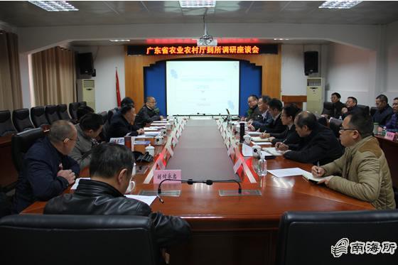 12月12日,广东省农业农村厅高庆营副厅长带领渔业相关处室和事业单位负责人一行8人,就海洋渔业科技创新、服务支撑产业发展,到重点实验室依托单位中国水产科学研究院南海水产研究所进行工作交流调研。南海所所长江世贵、副所长李纯厚、所长助理吴洽儿和相关处室负责人等参加了调研座谈会。所党委书记徐竹青主持座谈会。