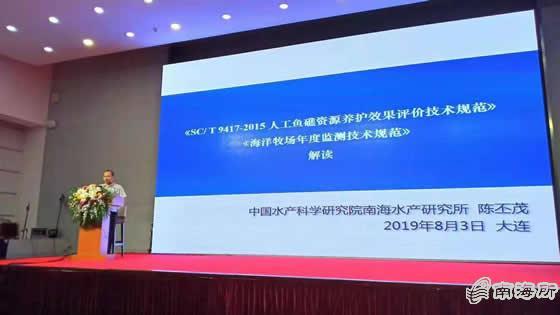 陈丕茂研究员、陈国宝研究员还应邀在同期举办的2019年度全国海洋牧场建设与管理培训班上授课,分别作了题为“《人工鱼礁资源养护效果评价技术规范》和《海洋牧场年度监测技术规范》解读”、“广东省珠海万山国家级海洋牧场建设及管理情况”的报告。