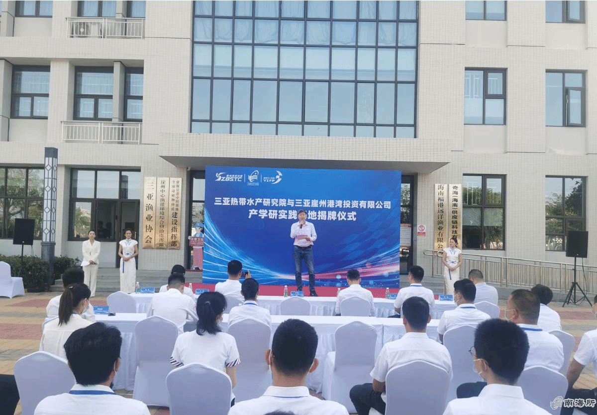 3月10日,三亚热带水产研究院与三亚崖州港湾投资有限公司产学研实践基地签约暨揭牌仪式在三亚崖州湾中心渔港举行。重点实验室热带水产研究开发中心副主任(主持工作)、三亚热带水产研究院常务副院长马振华,三亚崖州港湾投资有限公司总经理汤军、三亚崖州湾科技城管理局园区服务处处长汪佳良等出席签约仪式,并共同为该产学研实践基地揭牌。