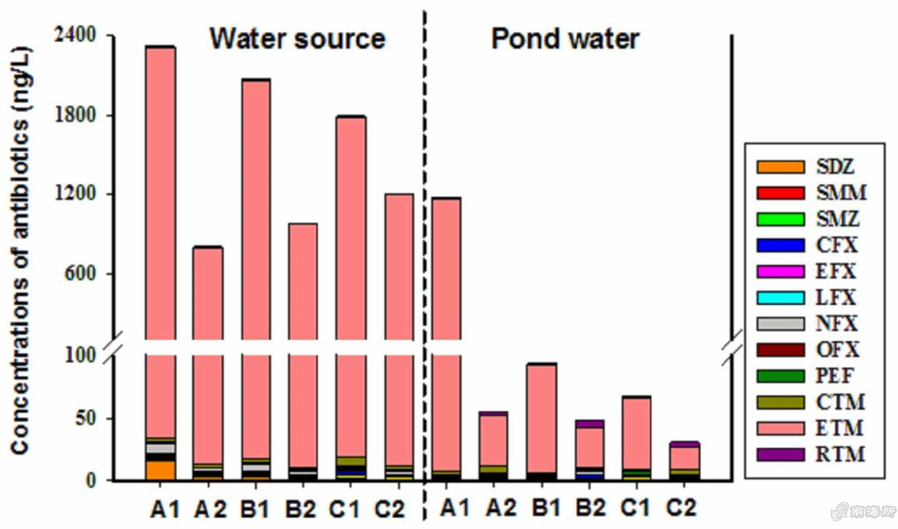 近日,农业农村部南海渔业资源开发利用重点实验室海水池塘养殖生态环境调控创新团队对海水池塘养殖环境抗生素来源、抗生素抗性菌(ARB)的灭活和抗生素抗性基因(ARGs)的去除研究取得重要进展,相关成果分别以题为“Spatiotemporal variations and source tracking of antibiotics in an ecological aquaculture farm in Southern China”和“Removal of antibiotic resistance genes and inactivation of antibiotic-resistant bacteria by oxidative treatments”发表在国际期刊《Science of the Total Environment》(JCR 1区,IF=6.551)上,两篇论文第1作者分别为苏浩昌和赵晓雨,曹煜成为通讯作者。该研究结果为推动“无抗”健康养殖、科学使用渔用氧化剂防控ARB和ARGs的传播提供了重要参考。上述研究得到中国水产科学研究院科技创新团队项目(2020TD54)、国家重点研发计划“蓝色粮仓科技创新”(2019YFD0900402)、国家现代虾蟹产业技术体系(CARS-48)等项目联合资助。