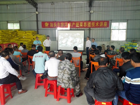 11月6日,重点实验室文国樑副研究员应广东恒兴饲料科技有限公司的邀请,赴汕头市牛田洋大顺实业公司开展水产健康养殖技术培训,有力推进了广东省科技计划“粤东海水高效健康养殖技术科技服务平台”和广东省渔港建设和渔业产业发展专项“对虾高密度零换水高效健康养殖技术研究与示范”的顺利实施,取得良好的社会效益。