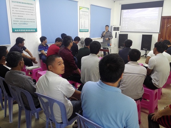 11月9日,重点实验室徐力文副研究员、南海水产研究所杨铿助理研究员等一行4人,到汕头市澄海区“南海水产研究所粤东养殖技术服务中心”举办了海鲈鱼苗标粗养殖技术培训,共有40多名海鲈鱼苗养殖从业人员参加培训。