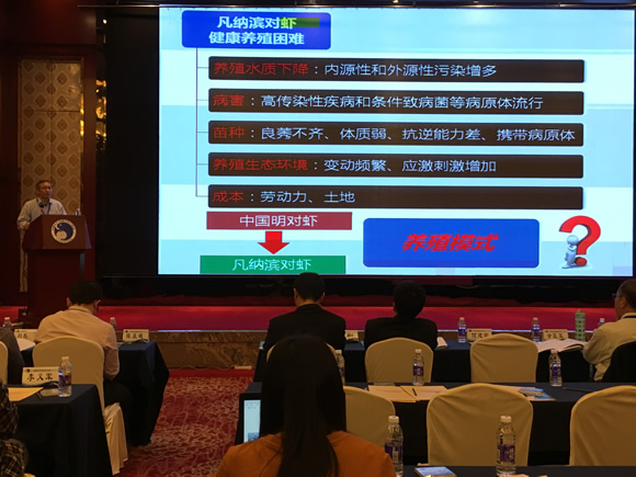 会上,曹煜成和张家松分别作了题为“华南对虾养殖池塘环境改良与调控策略”和“对虾工厂化养殖系统构建”的主题报告,基于中国对虾产业的发展现状和存在问题,分别介绍了华南对虾池塘养殖、对虾工厂化养殖的模式特点及其养殖关键技术,引起了与会代表的广泛兴趣和热烈交流。