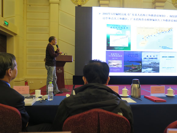 贾晓平在致辞时强调指出,希望通过本次论坛,中外专家和代表能够建立更加广泛的联系,加强相互间的交流与合作,共同推动世界海洋生态保护朝着健康、生态、可持续的方向发展。陈丕茂研究员作了题为“南海海洋牧场研究与实践”的主题报告,就广东、广西、海南等南海三省区海洋牧场研究与建设历程、南海人工鱼礁和海洋牧场建设效果及技术研发应用现状、南海海洋牧场产业和科技发展趋势等与国内外同行进行了分享。