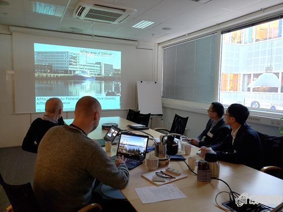 在挪威期间,重点实验室专家围绕“近海渔业资源养护”主题,先后与挪威科技大学海洋实验室和SINTEF Ocean 4位专家团队进行了学术交流,不仅介绍了我国海洋牧场建设情况及研究进展和所基本情况,还参观了相关实验设施,并赴Froya岛与私人养殖企业等相关负责人进行实地访谈,全面了解了挪威近海渔业资源养护发展历史和基本情况,围绕当前渔业资源增殖放流及其管理措施、可持续水产养殖、海洋牧场建设、联合研究生培养等工作进行了深入交流。