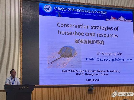 颉晓勇作了题为“Conservation strategies of horseshoe crab resources”的报告,分析了近20多年来我国鲎资源保护的成效,交流了南海所在中国鲎繁育技术、鲎发育生理学、环境污染对鲎幼体发育影响、鲎苗科学放流、鲎营养需求分析等方面的研究进展和成果亮点,提出了保护区管理、鲎资源增殖基础研究、鲎保护政策、公众参与鲎保护意识等方面的关键问题和建议措施,并先后接受北海电视台、《海洋与渔业》杂志社等媒体采访,呼吁全社会共同保护中国鲎资源。
