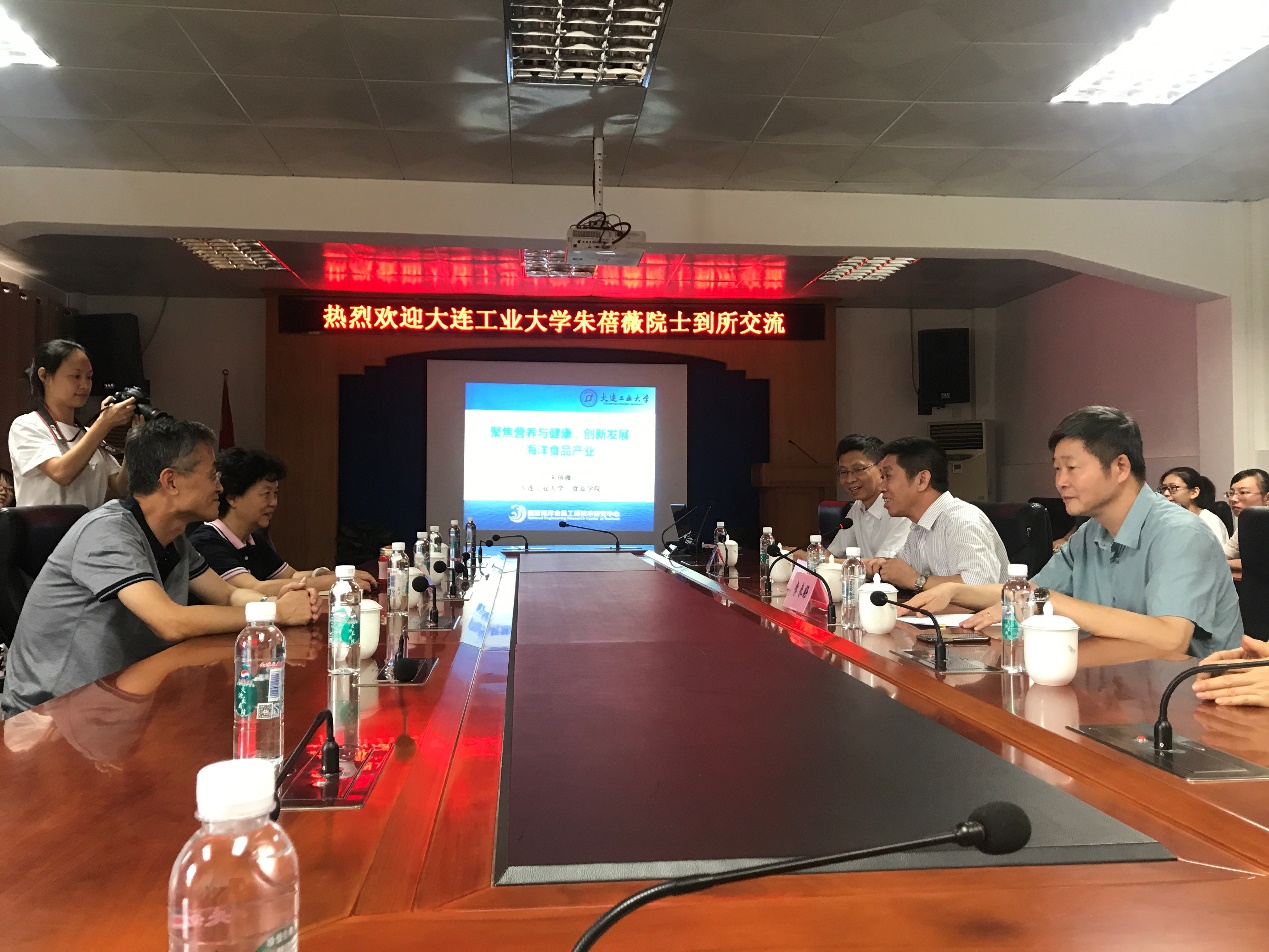 2017年10月11日,国家贝类加工技术研发分中心(大连)主任、大连工业大学朱蓓薇院士应邀到国家水产品加工技术研发中心(广州)访问交流,朱蓓薇院士在会上以“聚焦营养与健康,创新发展海洋食品产业”为题作专题报告。中国水产科学研究院南海水产研究所江世贵所长致欢迎辞,国家水产品加工技术研发中心(广州)主任李来好研究员主持会议,并作研发中心工作介绍,副主任杨贤庆研究员及中心加工学科方向科研人员、研究生参加会议。