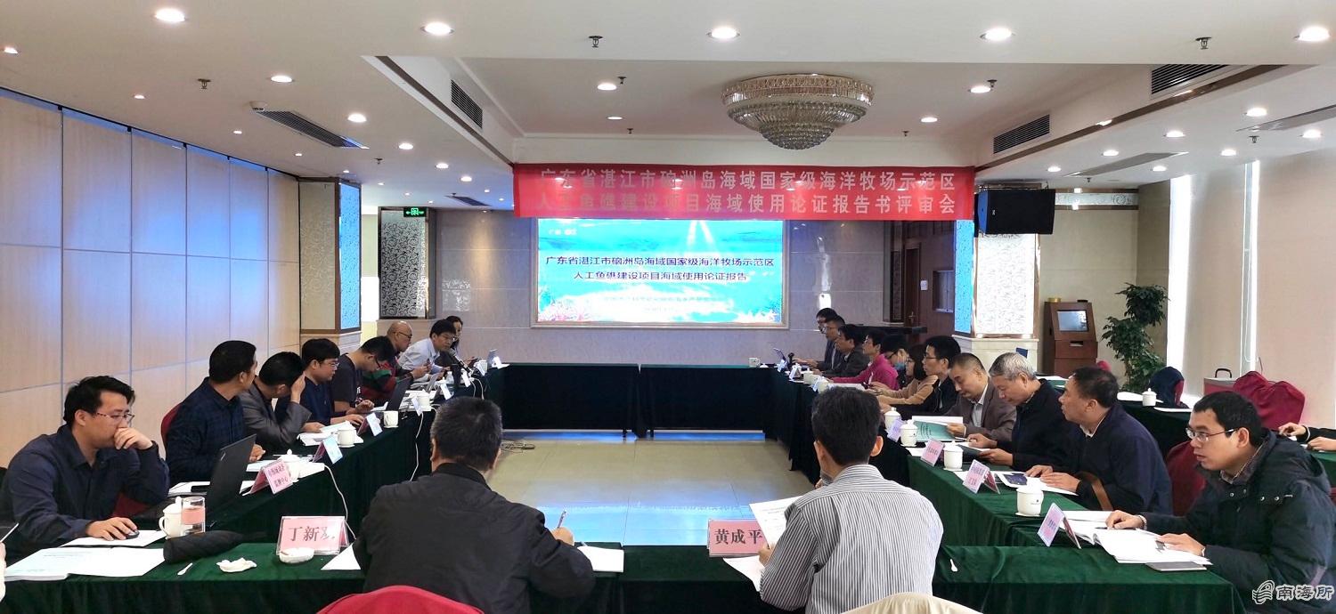会上,专家组认真听取了工作汇报,经审议和讨论后认为,该论证报告书对项目用海情况、用海资源环境影响分析、海域开发利用协调分析、海洋功能区划及相关规划符合性分析、用海合理性分析、海域使用对策措施等方面做了全面分析论证,编制符合海域使用论证大纲和技术导则的要求,引用法律、法规和技术规范较齐全,编制依据充分,技术路线正确,数据资料详实,论证重点明确、综合结论可信,一致同意《广东省湛江市硇洲岛海域国家级海洋牧场示范区人工鱼礁建设项目海域使用论证报告书》通过评审。