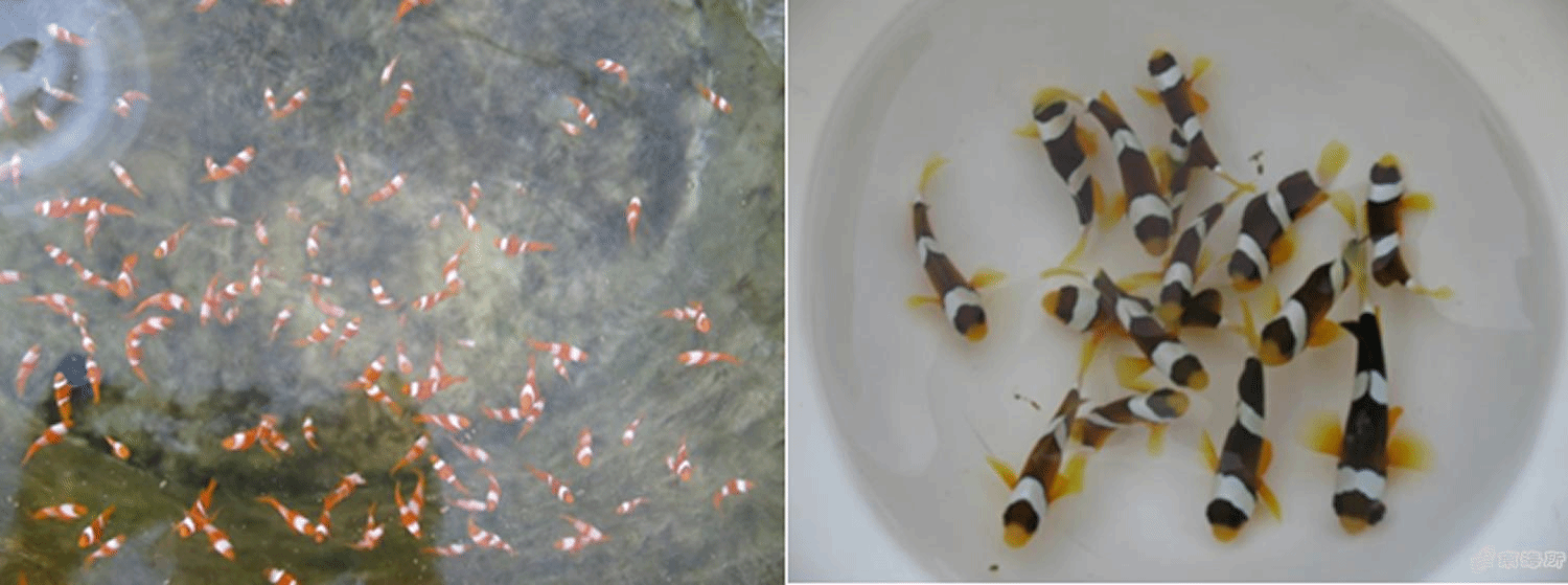 在以?种小丑鱼全人工培育技术基础之上,团队对小丑鱼的杂交变异种进行了定向培育,主要品种为澳洲黑公子小丑、“雪印”、“毕加索”和“红玛瑙”,平均育苗成活?5%,养殖成活率65%,并分别储备亲鱼15对?0对?0对和10对?/p>