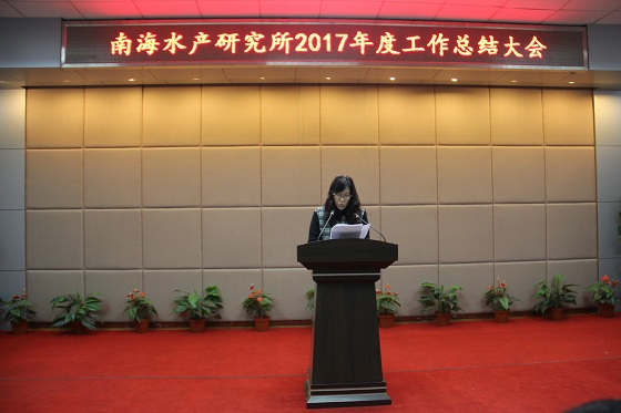 2?日,中国水产科学研究院南海水产研究所召开2017年度工作总结大会,全面总结回顾2017年度各项工作,强调部?018年工作思路和重点任务,并对有关先进集体和个人等进行通报表彰。所长江世贵作《南海水产研究所2017年度工作报告》,副所长杨北胜、李来好、李纯厚,党委副书记陈水胜和在职干部职工?50多人参加大会。所党委书记徐竹青主持大会?/P>