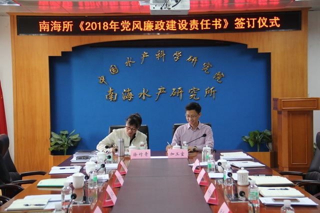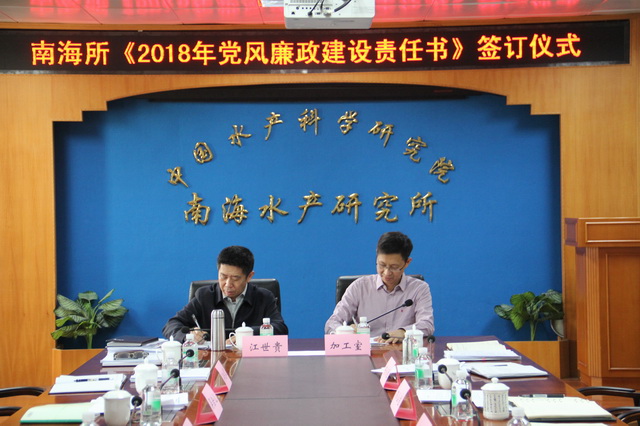 江世贵所长、徐竹青书记作为南海所党风廉政建设第一责任人还在会上与所属各部门主要负责同志签订了?018年党风廉政建设责任书》?/P>