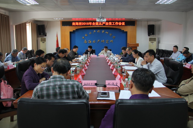 3?2日下午,中国水产科学研究院南海水产研究所召开2018年全面从严治党工作会议,传达学习中央、农业部、水科院有关会议和领导讲话精神,部署全所2018年全面从严治党重点任务。所长江世贵主持会议,所党委书记徐竹青,副所长杨北胜、李来好、李纯厚,党委副书记、纪委书记陈水胜,所长助理吴洽儿以及各部门主要负责同志、各在职党支部书记等参加会议?