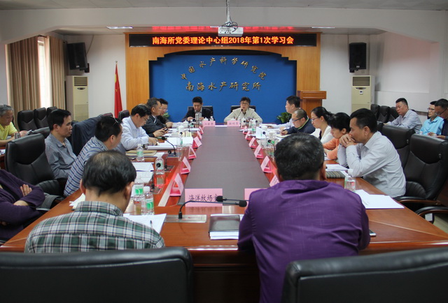 3?2日下午,中国水产科学研究院南海水产研究所党委召开理论学习中心?018年第1次学习会,传达学习党中央、农业部、广东省有关会议精神,并组织开展“将学习贯彻党的十九大精神推向深入”主题交流研讨。所党委书记徐竹青主持会议,所长江世贵,副所长杨北胜、李来好、李纯厚,党委副书记陈水胜,党委委员吴洽儿和各部门主要负责人、在职党支部书记等参加了学习?