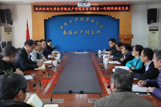 徐竹青书记对天津农学院在联合培养研究生工作上给予的大力支持表示感谢,并介绍了南海所近年来渔业科技创新和研究生联合培养工作等有关情况,表示将进一步加强研究生联合培养工作,尽力为研究生提供更好的学习、生活和科研环境。乔秀亭院长对南海所在研究生联合培养工作上的努力和取得的成绩表示赞赏,并希望与南海所深化在科学研究、人才培养等方面的合作,多出成果、多培养人才。周文礼副院长对天津农学院水产学?018年招生情况进行了介绍?/P>