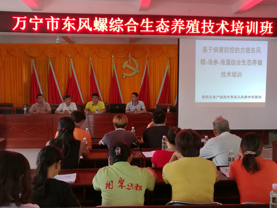 近日,依托中国水产科学研究院南海水产研究所建设的国家贝类产业技术体系三亚综合试验站、海南省农业科技110三亚市水产服务站,联合万宁、琼海等地的海洋与渔业主管部门,先后在万宁的山根、琼海的博鳌等地举办了方斑东风螺综合生态养殖技术培训班,来自当地基层渔技人员和养殖户等合?20多人参加了培训,现场赠送相关养殖技术资?30多份?/P>