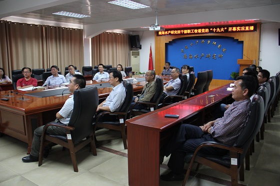 10?8日上?时,举世瞩目的中国共产党第十九次全国代表大会在北京人民大会堂隆重开幕,习近平总书记代表第十八届中央委员会向大会作了题为《决胜全面建成小康社会夺取新时代中国特色社会主义伟大胜利》的报告。中国水产科学研究院南海水产研究所所长江世贵、党委书记徐竹青、副所长李纯厚、党委副书记陈水胜和干部职工在所本部集中收看了开幕实况直播。所外各基地、中心自行组织进行了收看学习?/P>