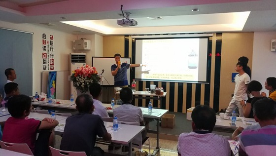 南海所专家紧密结合龙海当地南美白对虾养殖的实际情况,重点讲解了对虾养殖池塘环境菌藻调控技术,并针对弧菌、重金属、藻类毒素等常见问题,与养殖户进行深入交流,提出了实用科学的处理和调控方法,得到当地养殖户的好评?/P>
