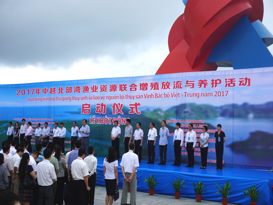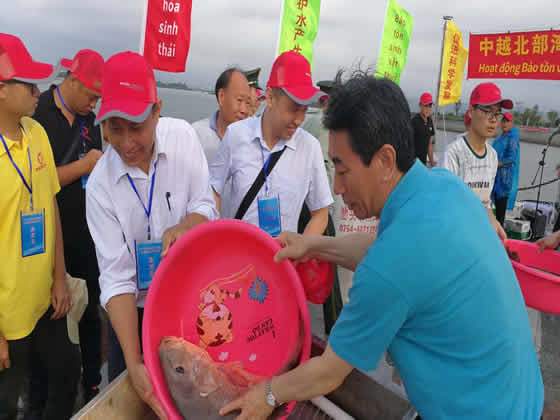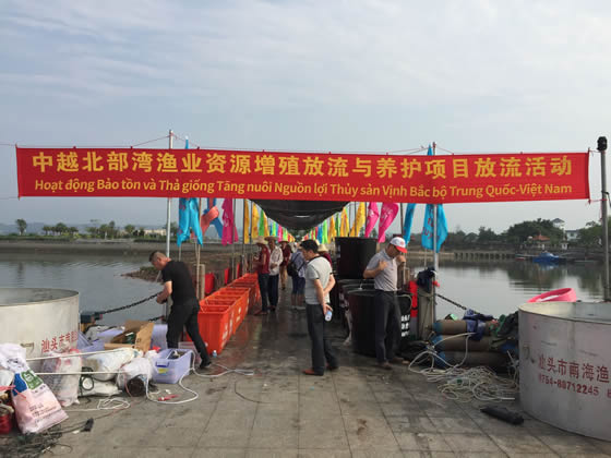 5?日上午,由中国水产科学研究院南海水产研究所等承办的中越北部湾渔业资源联合增殖放流与养护活动在位于中越边境水域的广西东兴市北仑河口举行。这次活动是在“一带一路”国际合作高峰论坛召开前夕,对2017??2日习近平总书记和越共中央总书记阮富仲会晤时见证签署的《中华人民共和国农业部和越南社会主义共和国农业与农村发展部关于开展北部湾渔业资源增殖放流与养护合作的谅解备忘录》要求的一次具体落实。中国农业部副部长于康震、越南农业与农村发展部副部长武文八、广西壮族自治区人民政府副主席黄日波等出席活动并致辞。中国农业部渔业渔政管理局局长张显良主持放流启动仪式,中国水产科学研究院院长崔利锋,南海水产研究所所长江世贵、党委书记徐竹青、副所长李来好等参加启动仪式和增殖放流?/P>