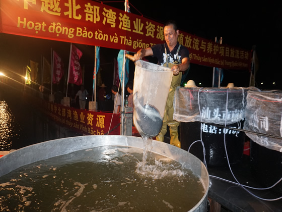 南海所承办的中越北部湾渔业资源联合增殖放流与养护活动在北仑河口举行