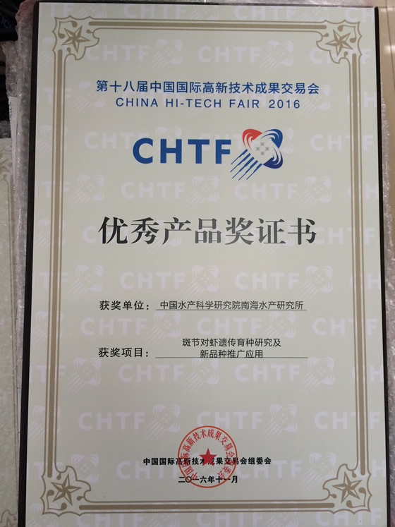 日前,中国水产科学研究院南海水产研究所收到?8届中国国际高新技术成果交易会颁发的优秀产品奖证书,全所共有包括斑节对虾新品种、海藻精深加工关键技术、深水抗风浪网箱、对虾封闭式工厂化循环水养殖技术等9项科技成果获得高交会“优秀产品奖”,获奖数量创历史新高?/P>