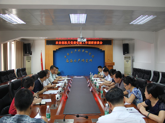 9?6日,农业部机关党委副书记、巡视员、纪委书记胡永万、中国水产科学研究院党组书记柳正一?人组成的调研组到中国水产科学研究院南海水产研究所调研党建工作,南海所党委书记徐竹青,党委委员、副所长杨北胜,党委副书记、纪委书记陈水胜和在职党支部书记代表参加了调研座谈会?/P>