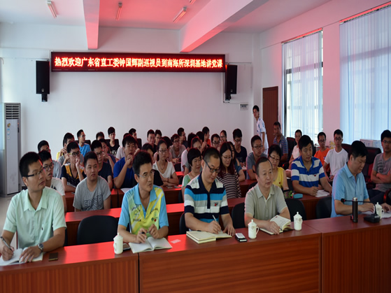 近日,广东省直属机关工作委员会副巡视员、广东省直机关党建研究会副会长钟国辉同志应邀到中国水产科学研究院南海水产研究所深圳试验基地作“两学一做”学习教育专题讲座。此次专题辅导讲座由南海所党委副书记陈水胜同志主持,深圳基地全体职工和在基地开展科学试验的科研人员、学生等?0人参加了此次专题学习?/P>