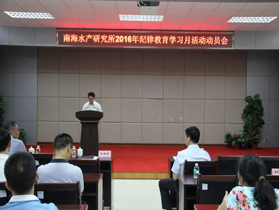 8?4日,中国水产科学研究院南海水产研究所召开以“学党章强党性、讲规矩守纪律”为主题的纪律教育学习月活动动员会。所长江世贵主持会议并作动员讲话,副所长李纯厚、所党委副书记陈水胜和在职党员干部、离退休党支部书记代表等参加了会议?/P>