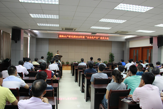 6?日,中国水产科学研究院南海水产研究所召开2016年“安全生产月”活动动员会。所党委副书记陈水胜主持会议并作动员部署,所长江世贵出席会议并讲话,副所长杨北胜、李来好和在职职?0多人参加了会议?/P>