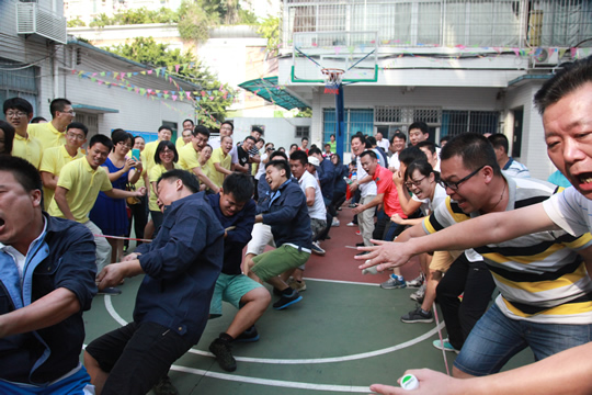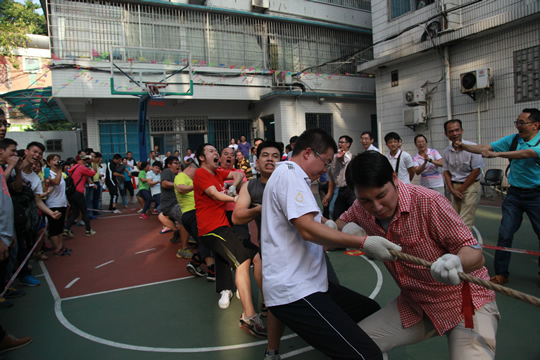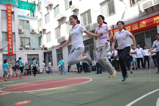 此次趣味体育竞赛活动共设置了硬地保龄球、共同进退、花样跳绳、定点投篮、混合拔河等5项团体比赛。在徐竹青书记宣布活动开幕后,大家随即投入到热火朝天的比赛氛围中。运动场上,参赛队员生龙活虎,斗志昂扬;裁判员一丝不苟,认真负责;场外观众热情鼓掌、助威呐喊;工作人员不辞辛劳,服务周到;江世贵、徐竹青等所领导也饶有兴致地参与到比赛中?/P>