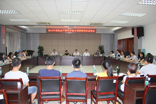 8?4日,中国水产科学研究院南海水产研究所召开2015年联合培养研究生座谈会。所长江世贵、党委书记徐竹青,副所长李来好、李纯厚等出席座谈会,研究生导师代表、部分联合培养研究生等近50人参加了座谈。所人事处处长吴洽儿主持座谈会?/P>