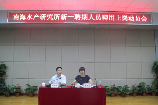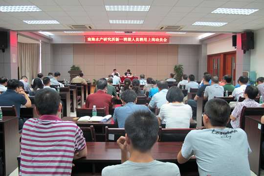 8?4日上午,中国水产科学研究院南海水产研究所召开动员大会,全面启动新一聘期人员聘用上岗工作。所长江世贵主持动员会,党委书记徐竹青作动员讲话,在职干部职工近120人参加了大会?/P>