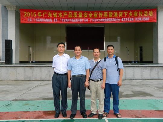 8?1日,由广东省海洋与渔业局主办?015年广东省水产品质量安全宣传周暨渔资下乡宣传活动在肇庆市高要区白土镇举行。中国水产科学研究院南海水产研究所陈永青研究员、陈健光副研究员、杨铿副主任、邓建朝博士等组成专家组应邀参加了此次活动,并在现场设置咨询台,开展水产品质量安全宣传?/P>