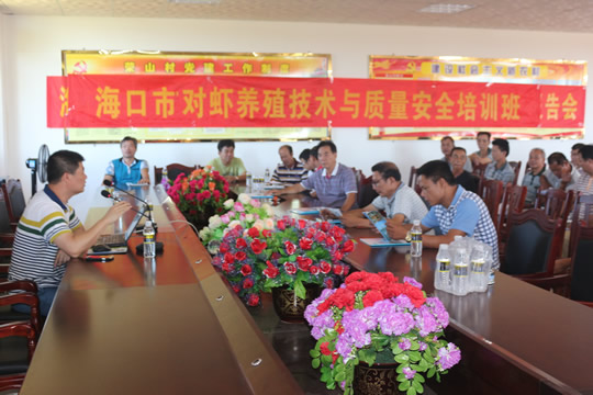 6?8日,应海口市海洋与渔业局技术推广站邀请,中国水产科学研究院南海水产研究所花都基地副主任杨铿、养殖室副研究员周发林一行,赴海口市开展对虾健康养殖技术培训,现场派发技术资?00多份。来自海口市西秀?0多名对虾养殖户参加了培训?/P>