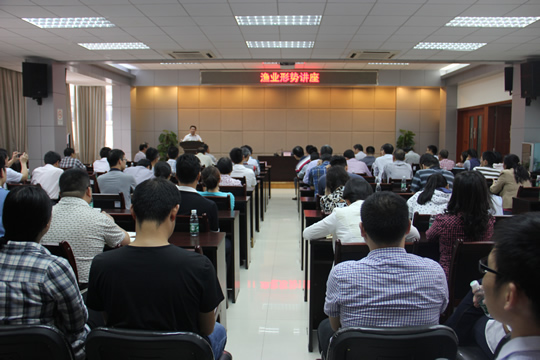4?3日,农业部渔业渔政管理局副巡视员刘新中应中国水产科学研究院南海水产研究所邀请,为全所干部职工作了一场关于渔业形势的专题讲座。南海所所长江世贵主持讲座,副所长李来好、李纯厚,党委副书记陈水胜和干部职工、联合培养研究生?50多人参加了讲座?/P>