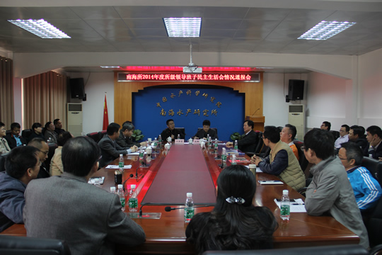 1?2日下午,南海水产研究所召开2014年度所级领导班子民主生活会情况通报会。所党委书记刘新中主持会议,所党委委员、中层干部、在职党支部书记等参加了会议?/P>