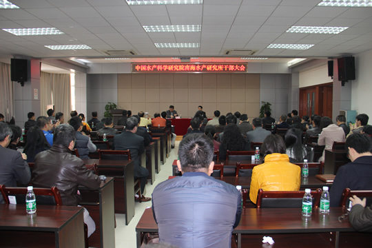 2015??0日上午,中国水产科学研究院南海水产研究所召开干部大会。院党组书记柳正出席大会,院人事处处长徐竹青、科研计划处副处长韩刚,南海所领导班子成员、在职干部职工参加了会议。大会由南海所所长江世贵主持?/P>