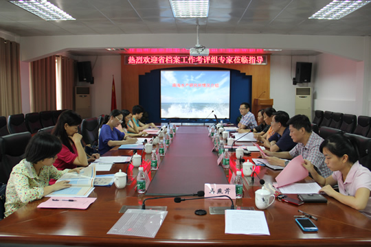 10?8日,广东省档案局组成档案评估专家组一?人,到中国水产科学研究院南海水产研究所对档案工作进行检查评估。南海所党委副书记陈平南、所长助理陈水胜和所办公室、档案室相关负责人等接待了评估专家组一行?/P>